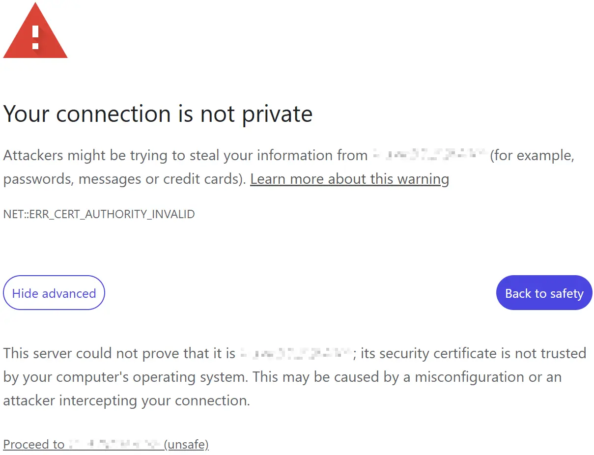 click Proceed to <ip> (unsafe).