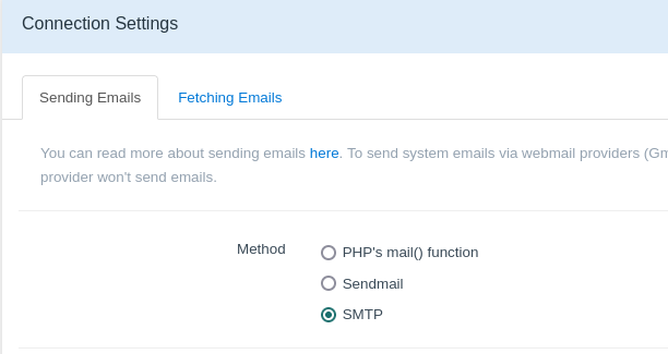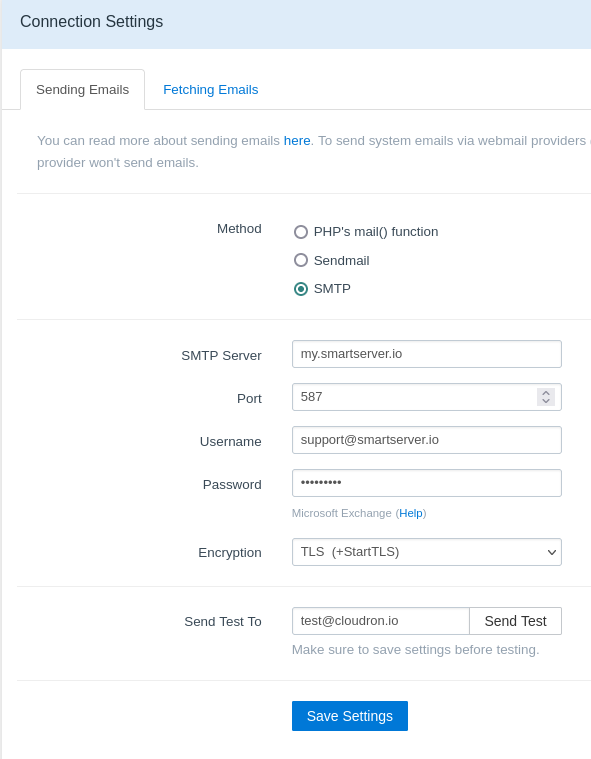 To configure Freescout with a Cloudron mailbox, use the following connection settings.